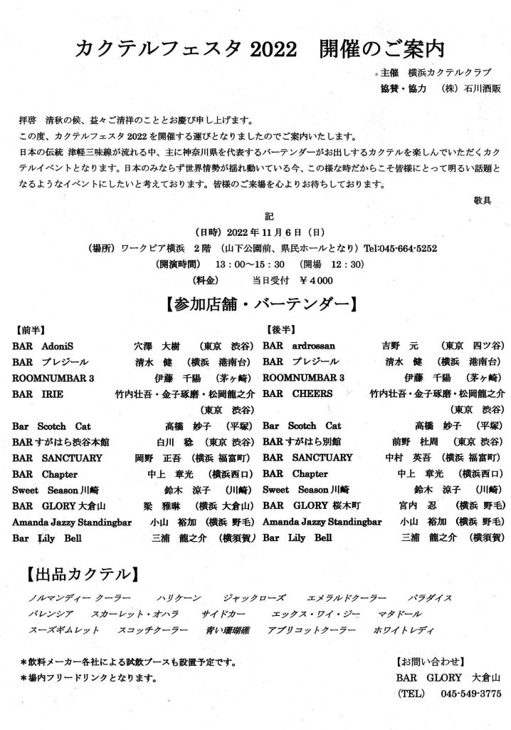 カクテルフェスタ2022開催のご案内