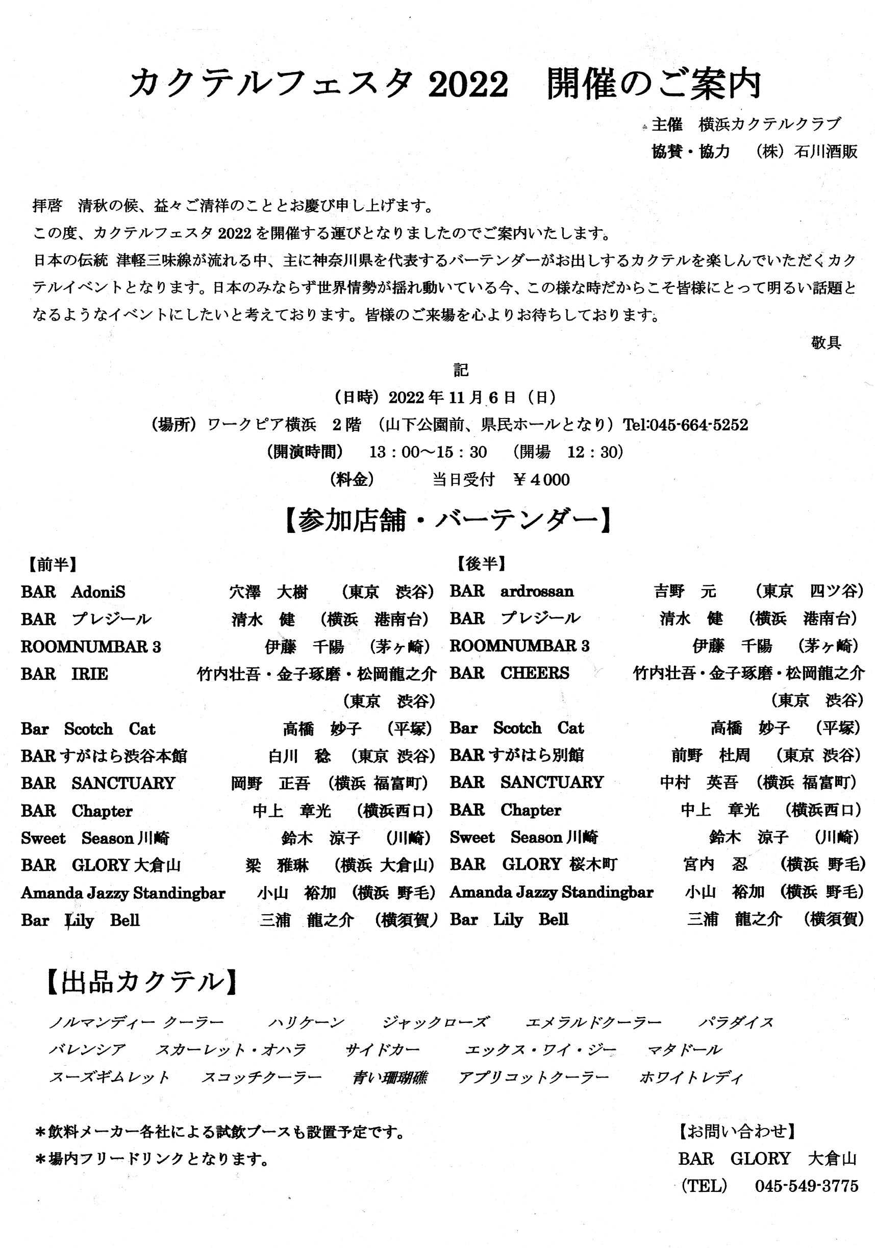カクテルフェスタ2022開催のご案内